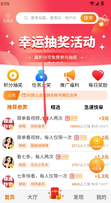 2、登录成功以后来到首页,查看推荐悬赏的部分,然后找到你要接取报名的任务部分。