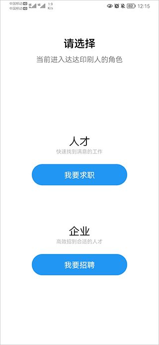1.进入达达印刷人app后,首先选择求职或招聘登录。