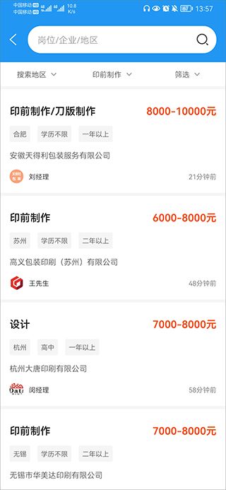 丰富的职位资源:达达印刷人平台汇集了大量印刷行业的优质职位,求职者有丰富选择,能够找到符合自身条件的工作机会。