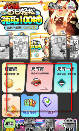 2.进入首页,其中呈现多种玩法,如扭蛋机、元气赏等,选择目标开启;