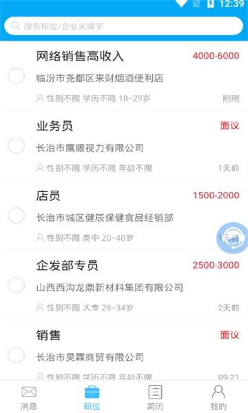 职位搜索:支持通过关键词快速搜索到心仪的职位。