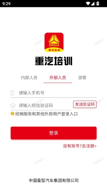 进入登录页面可以根据自己的身份选择登录方式,如果是内部员工则需要寻找管理员注册,如果是外访者使用外部人员或者游客,然后点击右下方的去注册。