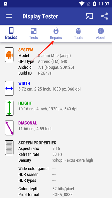 display tester怎么修复烧屏?display tester汉化版下载推荐给大家!这是一款专为安卓手机打造的屏幕检测软件,不止可以测试坏点,颜色,亮度等情况,还可以帮你一键修复烧屏,大多数屏幕问题都可以检测到,快来试试吧。