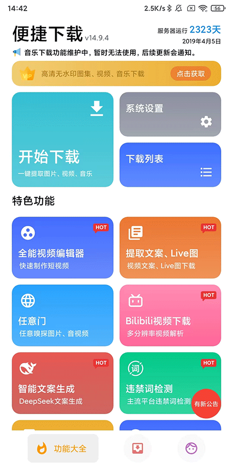 便捷下载app是款多功能下载工具,帮助用户从互联网中便捷的获取和处理多媒体及文档内容,当用户在浏览网页说这刷短视频的时候碰到心仪的内容可以通过复制链接直接在该软件中下载,支持批量下载哦!
