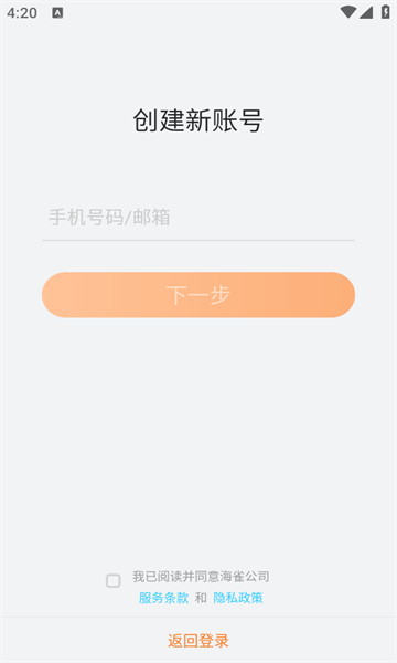 1、在海雀应用app的登录页面,就能及时进行登录(或者注册一个海雀帐户)。