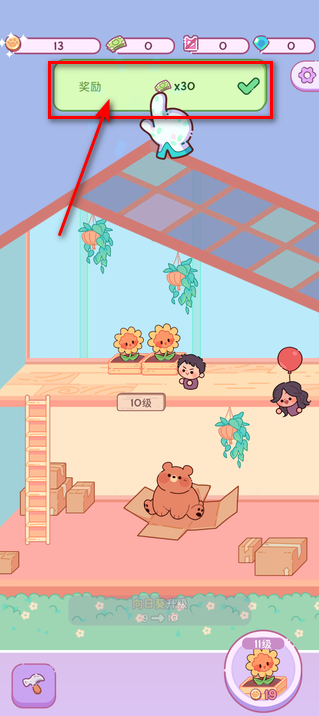 11.收集金币的方式就是点击小熊这边掉落的金币。