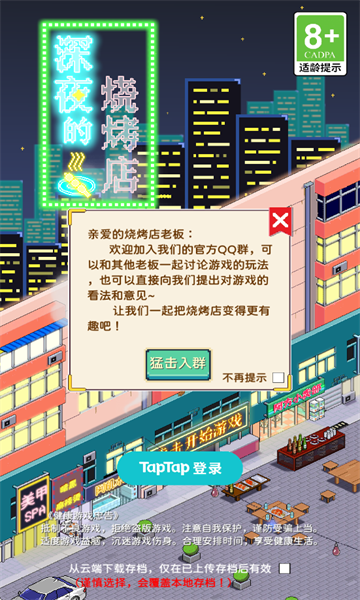 深夜的烧烤店是一款像素画风的经营小游戏,玩家可以在游戏中免广告获取奖励,不断制作美食,吸引更多的客人,获取更多的金币,体验经营的乐趣,游戏玩法轻松,喜欢就快来下载吧!