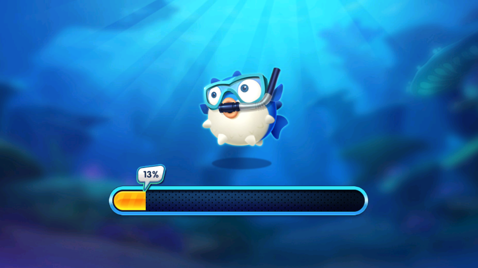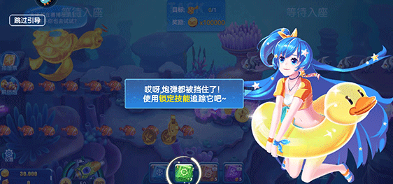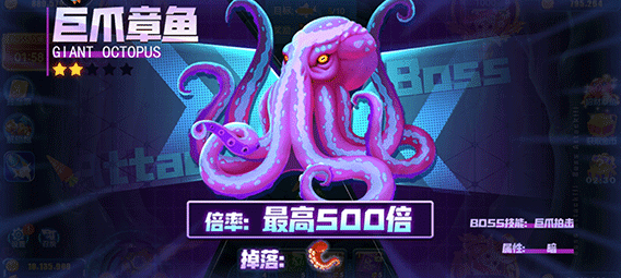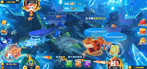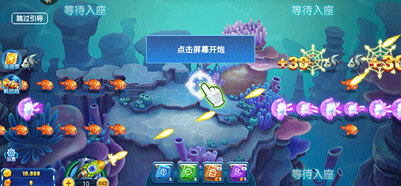 使用不同倍率炮台射击游动鱼类,按倍率获得金币奖励