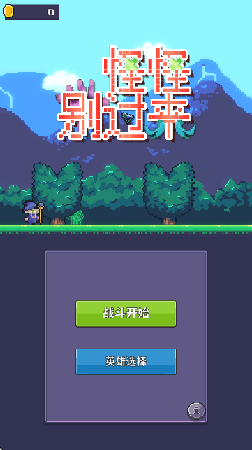 1:进入《怪怪别过来》游戏主界面,可选择“战斗开始”直接进入游戏,或点击“英雄选择”挑选职业。