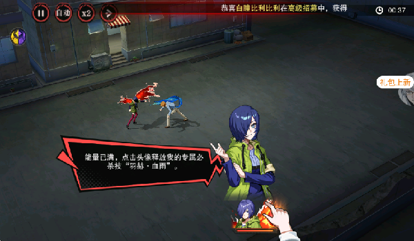 2、在战斗过程中,能量已满点击头像可以释放专属杀技,给敌人造成较大的伤害。