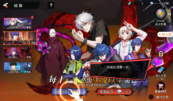 1、全角色解锁:玩家在游戏上线之初即可获得所有角色,包括金木研、雾岛董香等经典人物,随心所欲地操控和培养他们。