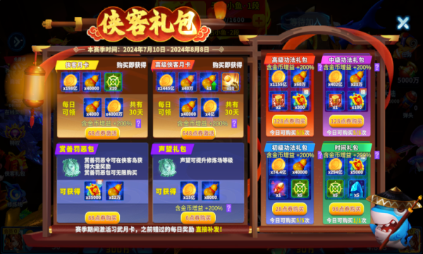 2、激活金币增益后,购买金币商城、周礼包、会员专属等礼包时,获得的金币享受增益效果。